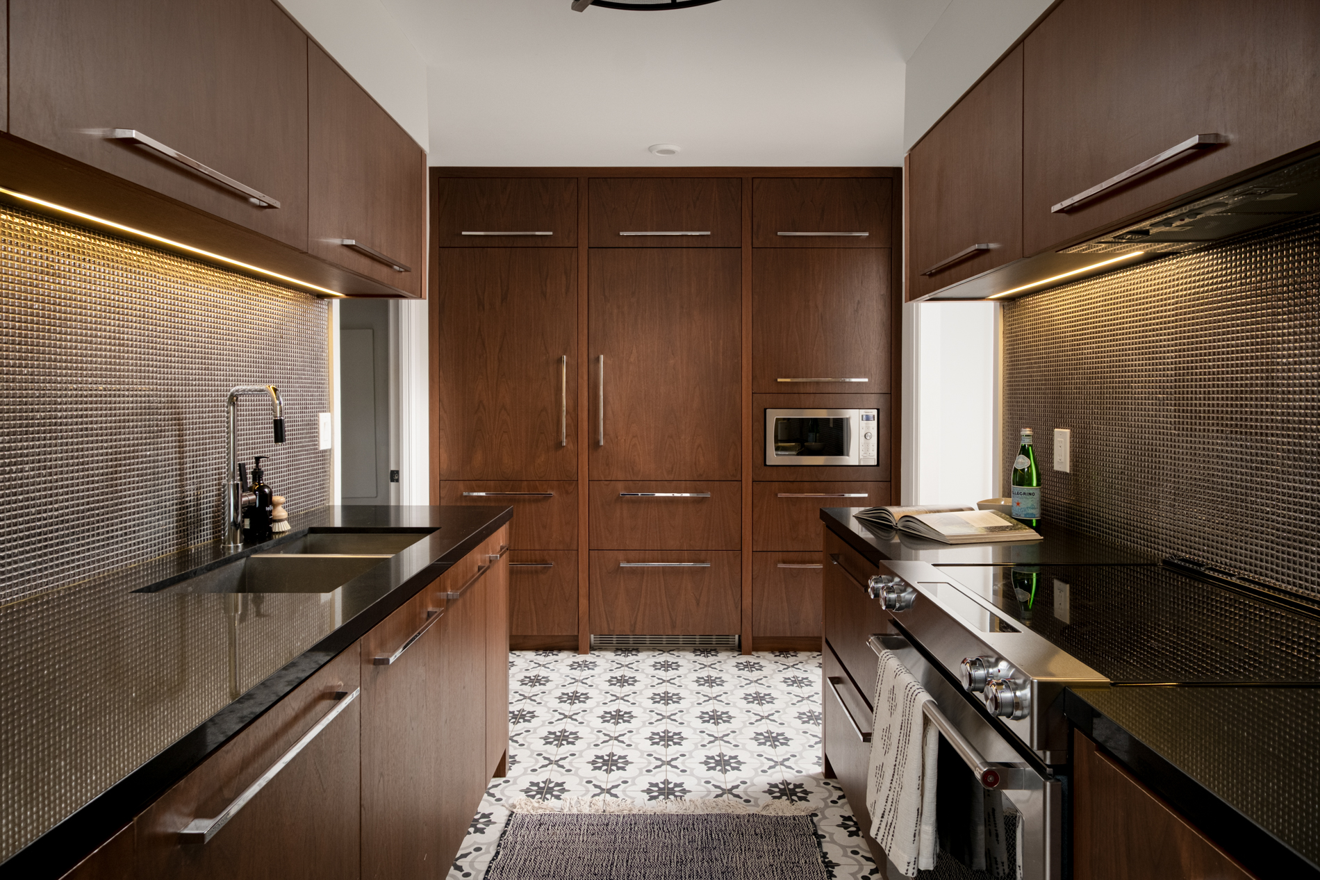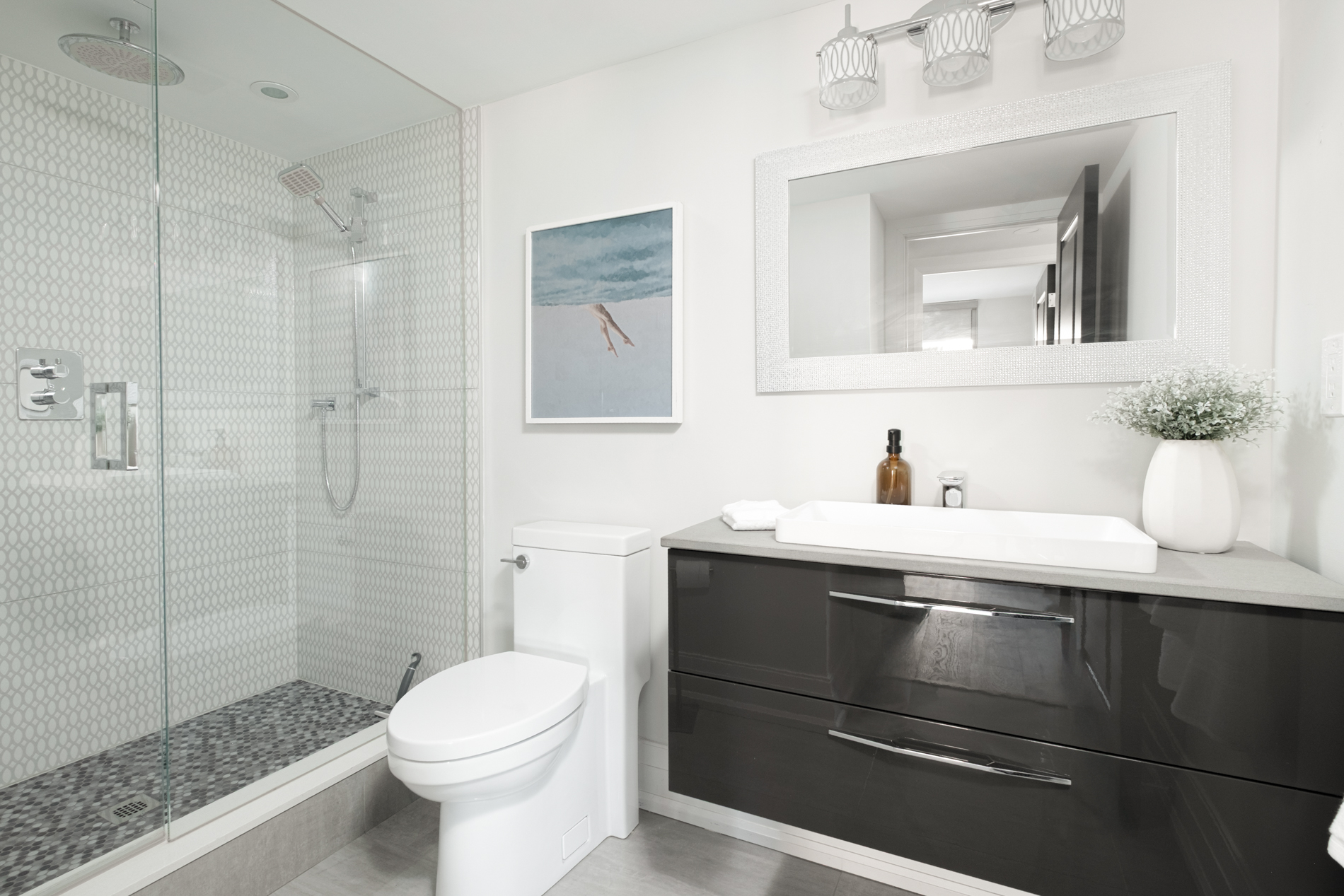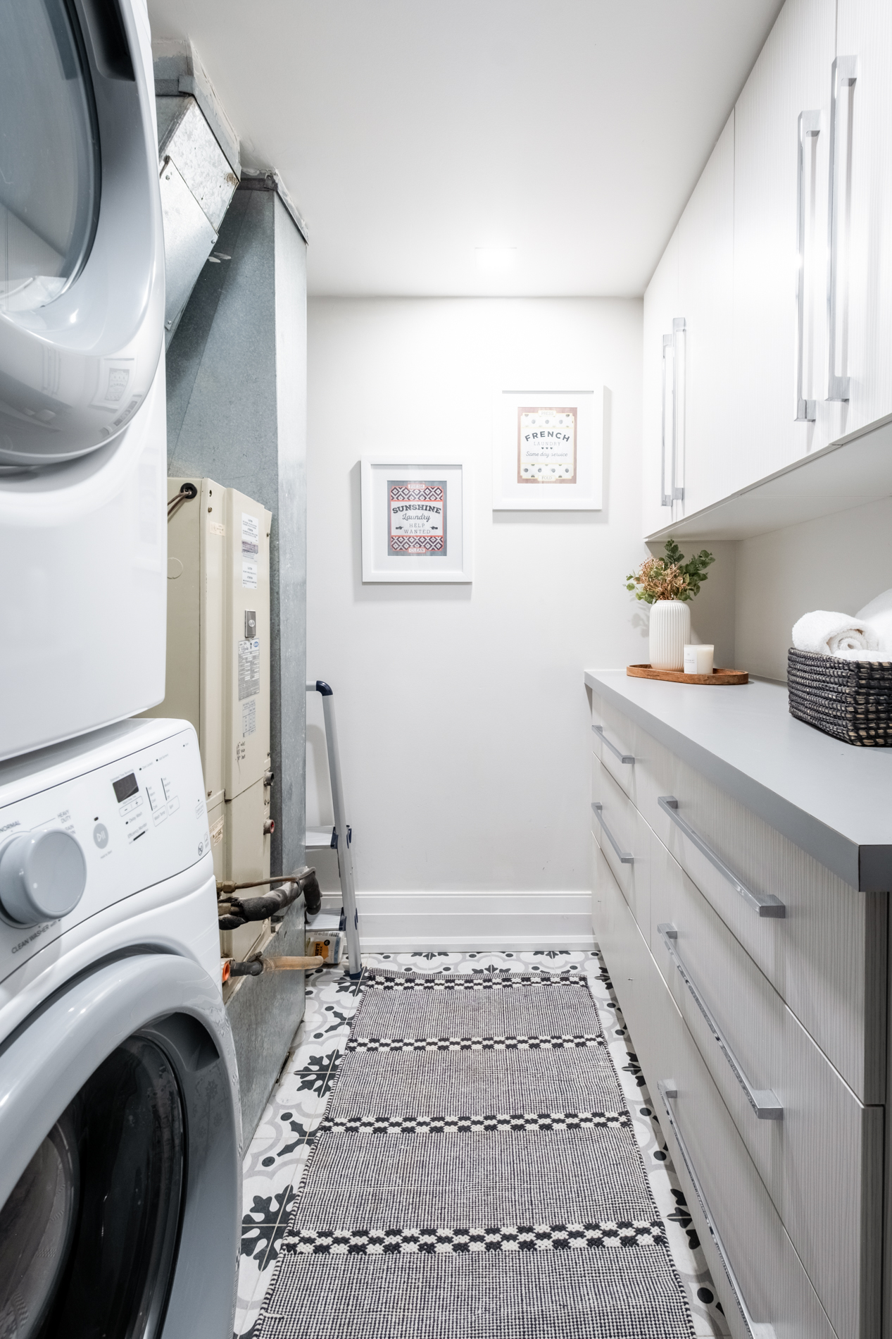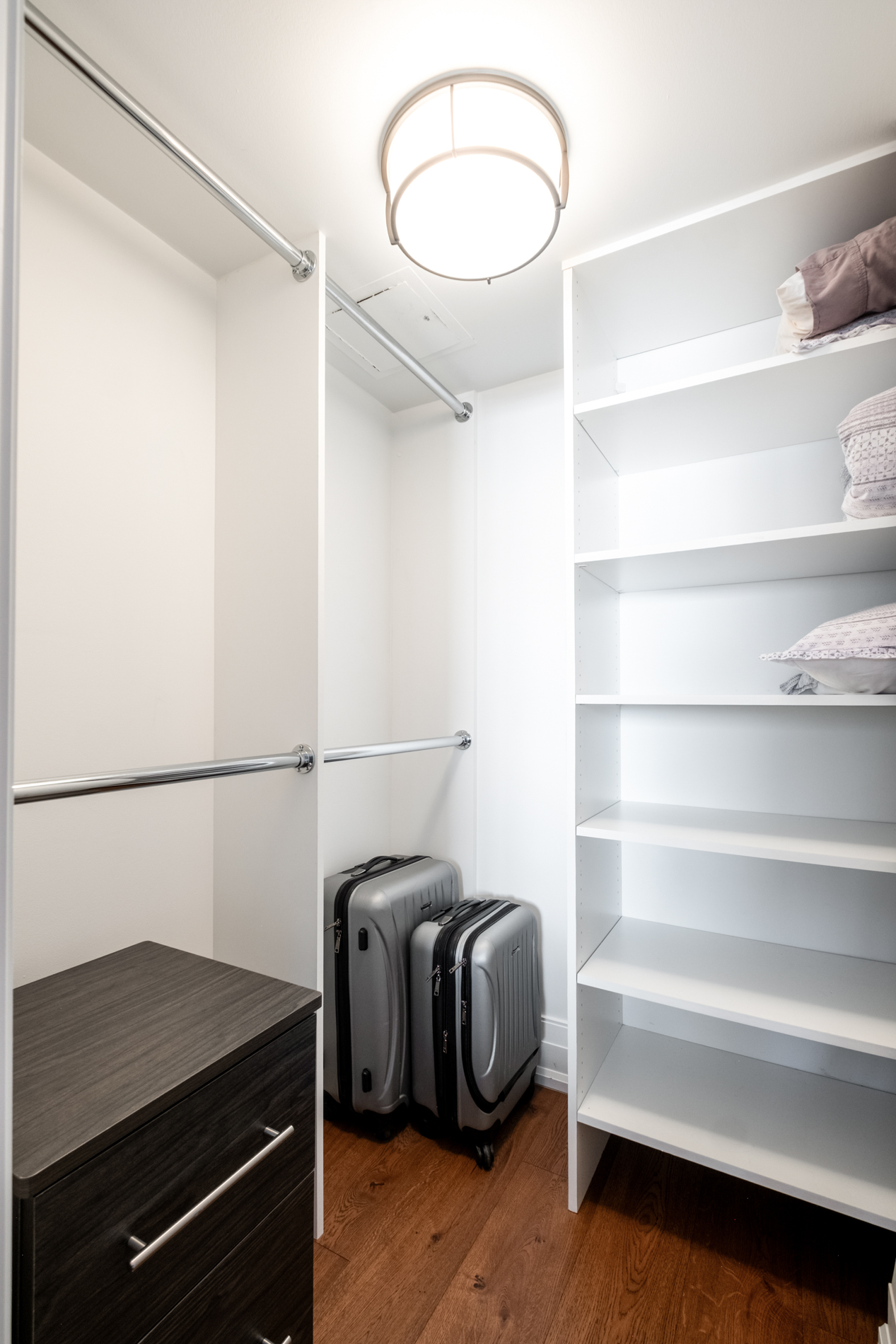 A foyer to welcome your guests. A galley-style kitchen with paneled appliances (including Liebherr fridge & Bosch dishwasher) and plenty of smart storage. 2 bedrooms and 2 full bathrooms. A primary suite with an oversized room, large walk-in closet with custom organizers, and a 5 pc ensuite bathroom (including a soaker tub and double vanity). Hardwood floors and Hunter Douglas roller shades. A separate laundry room (with extra storage!), 2 private balconies and a full second bedroom with a murphy bed/desk combination, perfect for a home office and a place for the grandkids to stay. Plus, 1 parking spot and 1 oversized locker included for your exclusive use.